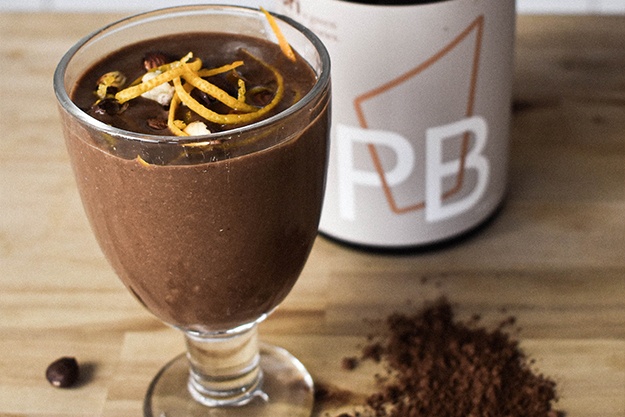 Vegansk kakao-proteinshake med et hint af nougat smag af Umahro Cadogan