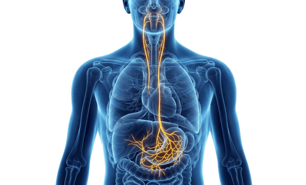 Selve bindeleddet mellem din hjerne og din tarm er vagusnerven. Det er kroppens længste kranienerve, som fungerer som en tosporet motorvej for nervesignaler.