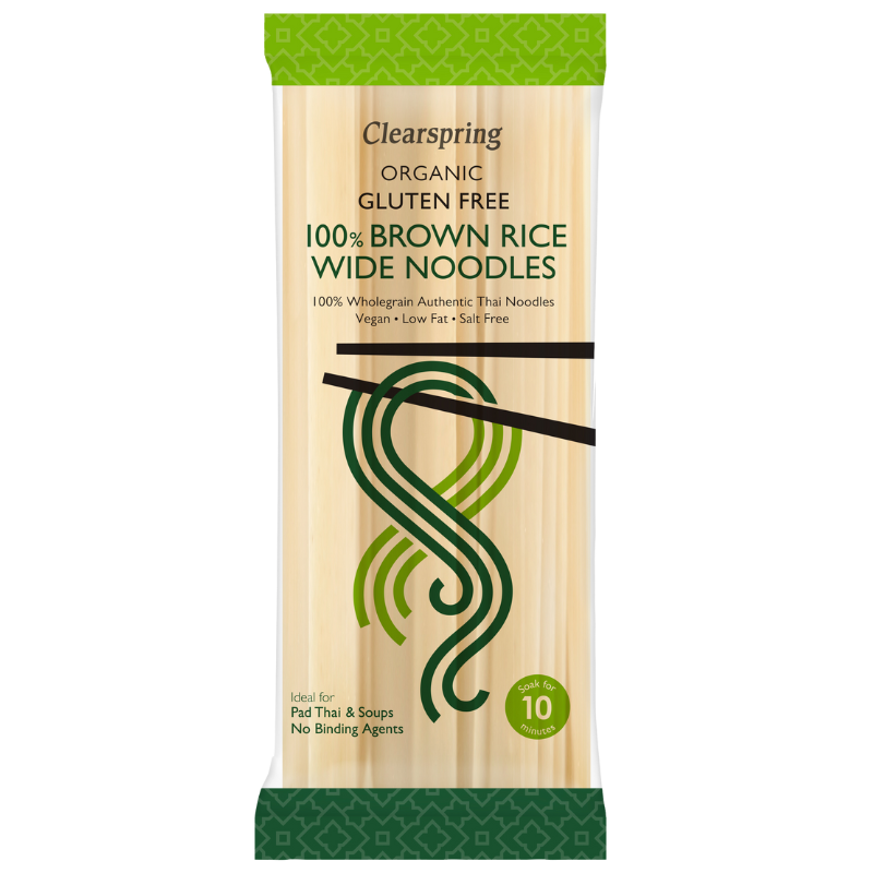 Clearsprings økologiske fuldkornsnudler lavet på brune ris, som er nemme at tilberede. Steg dem med grøntsager og en Pad Thai sauce, lav en lækker asiatisk nudelsalat eller tilføj dem til supper for et hurtigt og lækkert måltid. De kan også anvendes som et glutenfrit alternativ til pasta.