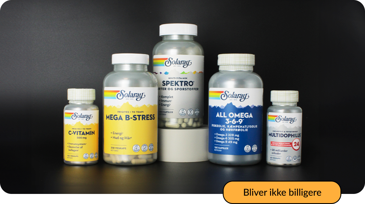 Solaray er ét af Danmarks mest populære helsebrands – og lige nu sparer du min. 30% på HELE sortimentet.