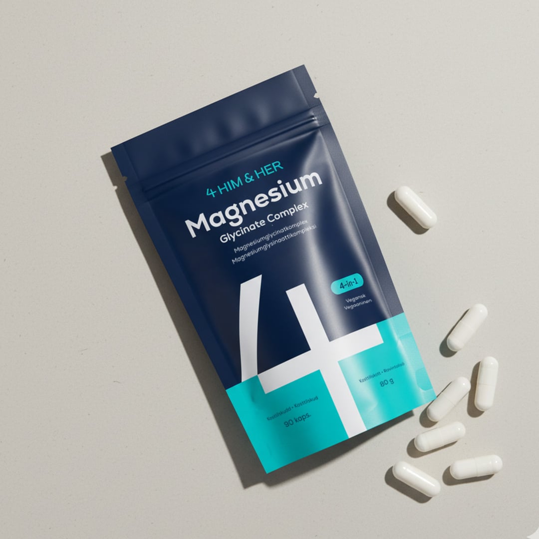 Magnesiumglycinat-kompleks, som bidrager til normal muskelfunktion, reducering af træthed og udmattelse, nervesystemets normale funktion samt normal psykologisk funktion. Kombinerer tre biotilgængelige former for magnesium – bisglycinat, citrat og malat.