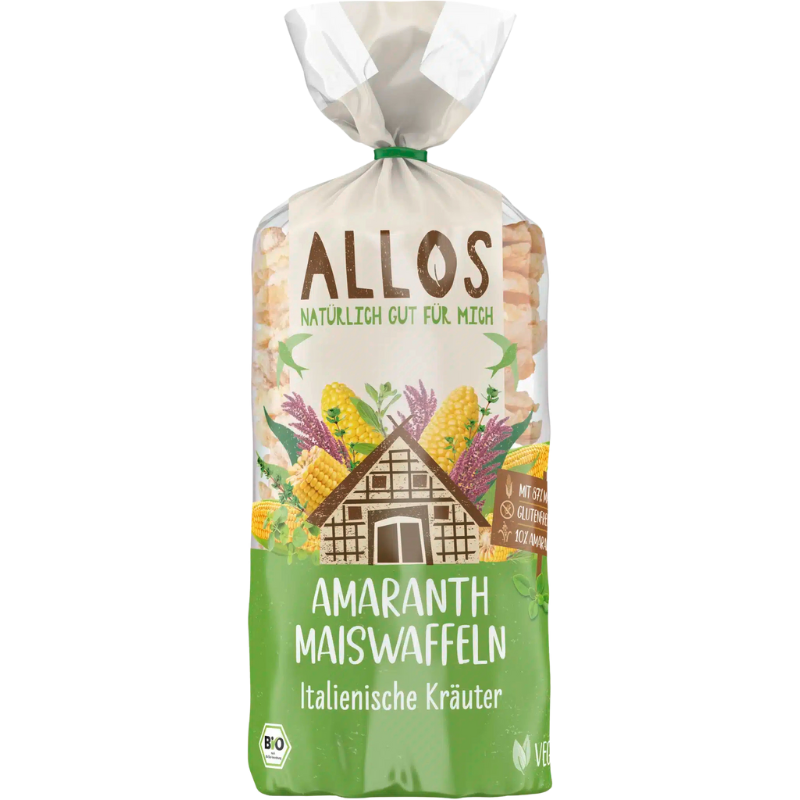 Allos’ sprøde, lyse majsgaletter bages af majs og amarant og overdrysses med italienske urter. Den ekstra tynde form gør majsgaletterne ideelle til krydrede og søde pålæg, som et lækkert mellemmåltid eller som en form for snack.