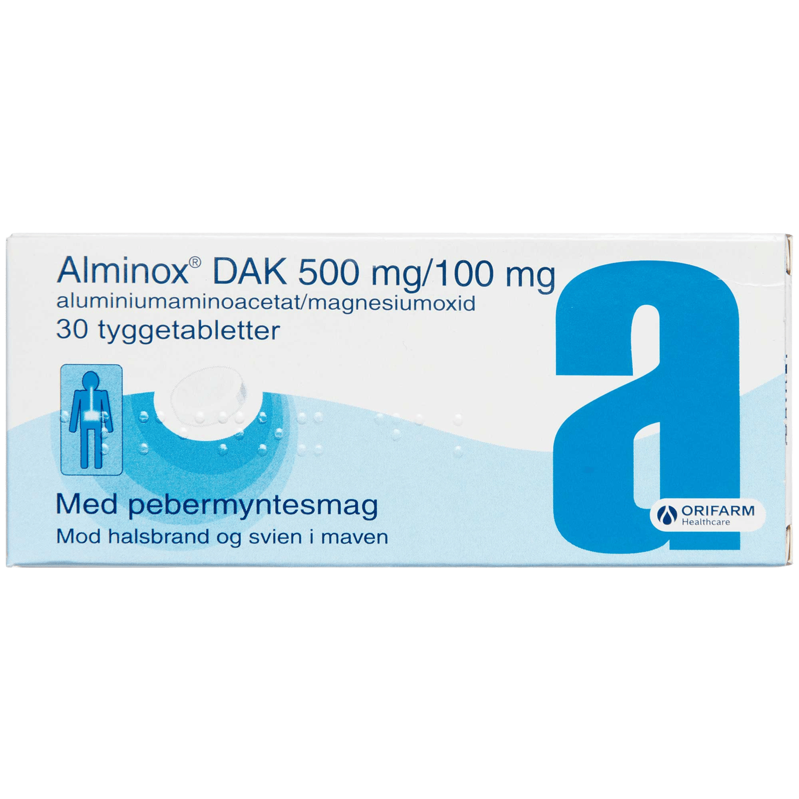 Alminox DAK Tyggetabletter er en tyggetablet der har en smag af mint, som er fremstillet til at bekæmpe halsbrand, mavesyre og svien i maven.