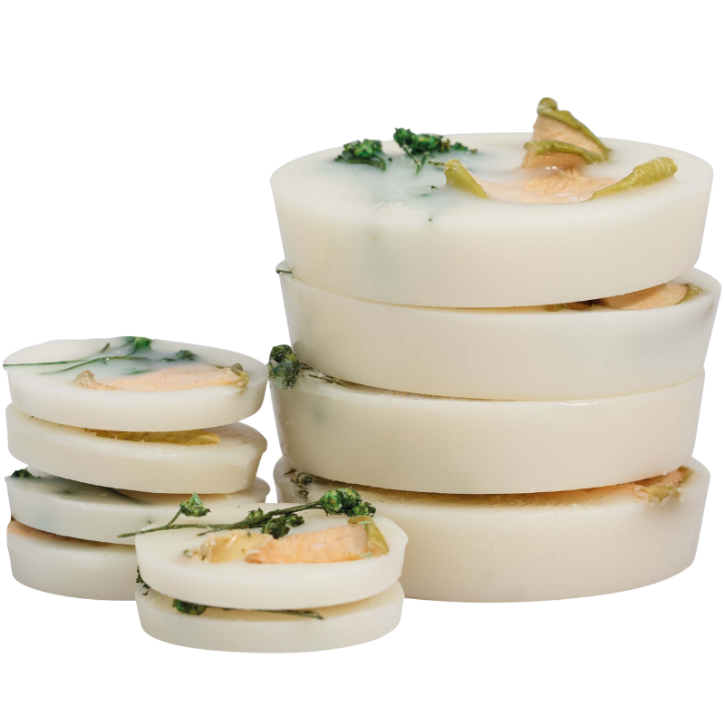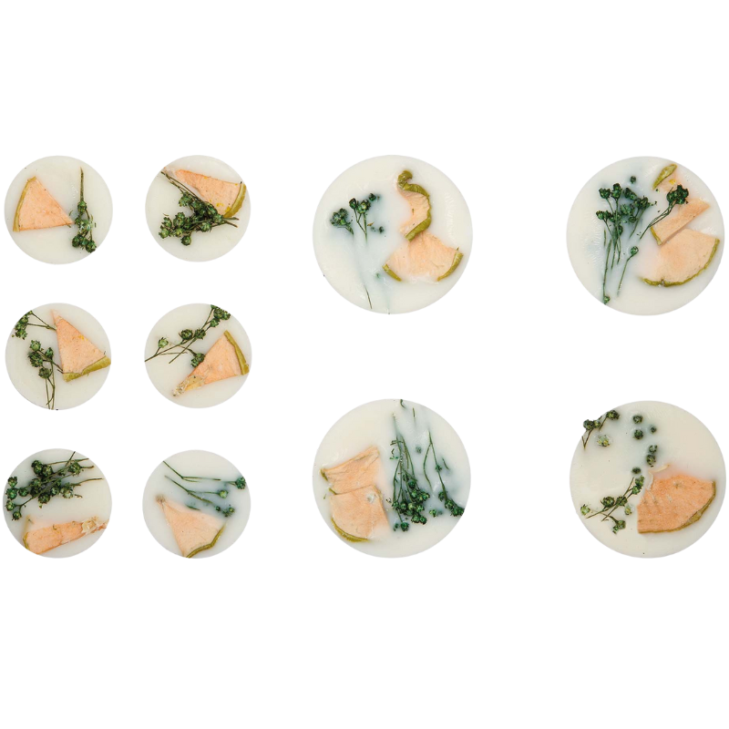 Forvandl dit rum til en rolig oase, mens du forkæler dig med den forfriskende duft af en citrus-medley harmoniseret med frugtagtige noter. Grøn æble og Lime duftprofil har en levende blanding af bergamot, lime og mandarin, lagdelt med den saftige essens af modne grønne æbler og søde pærer. Duftvoks er en populær og effektiv måde at sprede behagelige dufte i hjemmet på. Fordele ved duftvoks: Intens og langvarig duft: Duftvoks indeholder typisk en høj koncentration af duftolie, hvilket giver en kraftigere og mere vedvarende aroma end f.eks. duftlys. Ingen sod eller røg: Især ved brug af elektrisk varmer, hvilket gør det mere allergivenligt og renere. Genanvendelig: Voksen kan bruges flere gange, indtil duften er opbrugt. Stort udvalg af dufte: Duftvoks findes i mange varianter og kan nemt skiftes ud, så du kan tilpasse duften efter humør eller årstid. Æstetisk og sanselig oplevelse: Smeltet voks og duft kombineret med et smukt designet brænder skaber en luksuriøs og beroligende atmosfære. Æsken indeholder i alt 10 duftvoks, 6 stykker, der måler 35 mm og 4 stykker, der måler 60 mm, i alt 124 gram ren aromatisk nydelse. Hver duftvoks er fremstillet af højkvalitets botanisk sojavoks, der giver en ren og langvarig forbrænding, der tilfører dit rum en duft af grønt æble og lime. Ingredienserne flyder i den smeltede voks og er en fryd for øjet.Dosering