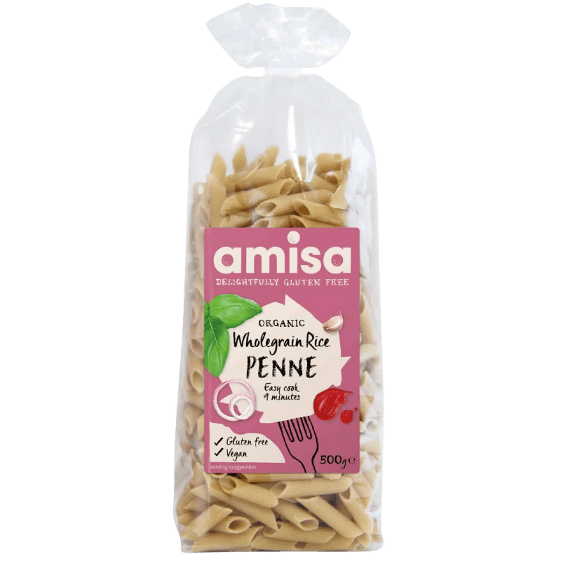 Amisa økologiske og glutenfri Fuldkornsris Penne er et alternativ til traditionel pasta, perfekt til alle dine yndlingsretter