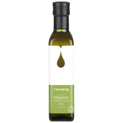 Økologisk, koldpresset avocadoolie rig på umættede fedtsyrer. Perfekt til dressinger, stegning og bagning. Bæredygtigt produceret af familieejede Clearspring.