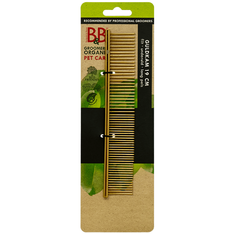Anvend din guldkam, efter du har børstet pelsen grundigt igennem med din B&B karte/børste. Din kam vil nu virke som en slags ”løgnedetektor” og afsløre evt. filt, som karten/børsten måske ikke har fanget.