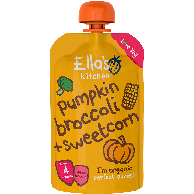 Denne babymos med en lækker smag af græskar og broccoli kan gives til børn fra 4 måneders alderen. Mosen har en blød og fin konsistens uden klumper og kommer i Ellas Kitchens praktiske genlukkelige pose, som gør det nemt for barnet at spise direkte fra posen.