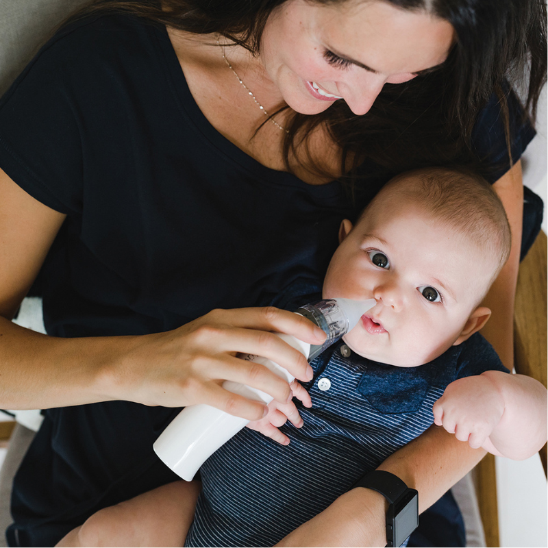 Hjælp dit barn med at trække vejret lettere med bblüv Elektrisk Næsesuger. Denne batteridrevne næsesuger fjerner skånsomt og effektivt snot og slim med et kontinuerligt sug, der er sikkert for nyfødte, spædbørn og småbørn.