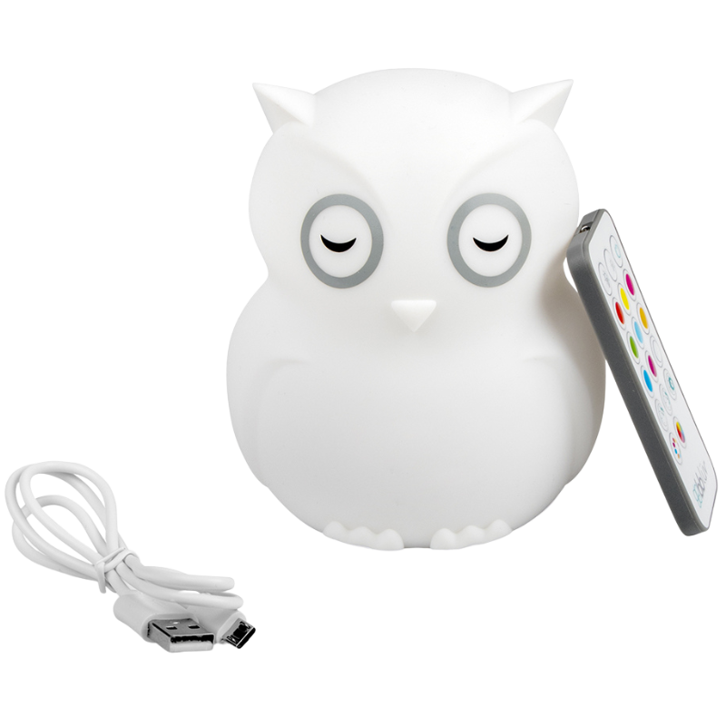 Skab en tryg og hyggelig atmosfære på børneværelset med denne bløde ugle-nattelampe fra bblüv. Den er lavet af stødabsorberende silikone og skifter farve med et let tryk på hovedet eller via den medfølgende fjernbetjening.