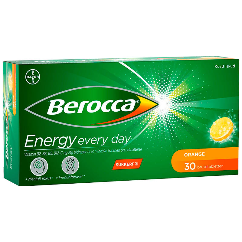 Berocca er et særligt sammensat vitamin- og mineraltilskud til dig med en hektisk hverdag og indeholder alle 8 B-vitaminer og C-vitamin samt magnesium, kalcium og zink. Berocca® er et globalt brand solgt i over 40 lande verden over, og har været på markedet i mere end 25 år. Berocca® bidrager til at mindske træthed og udmattelse, hvilket kan understøtte en normal koncentration og mental funktion.