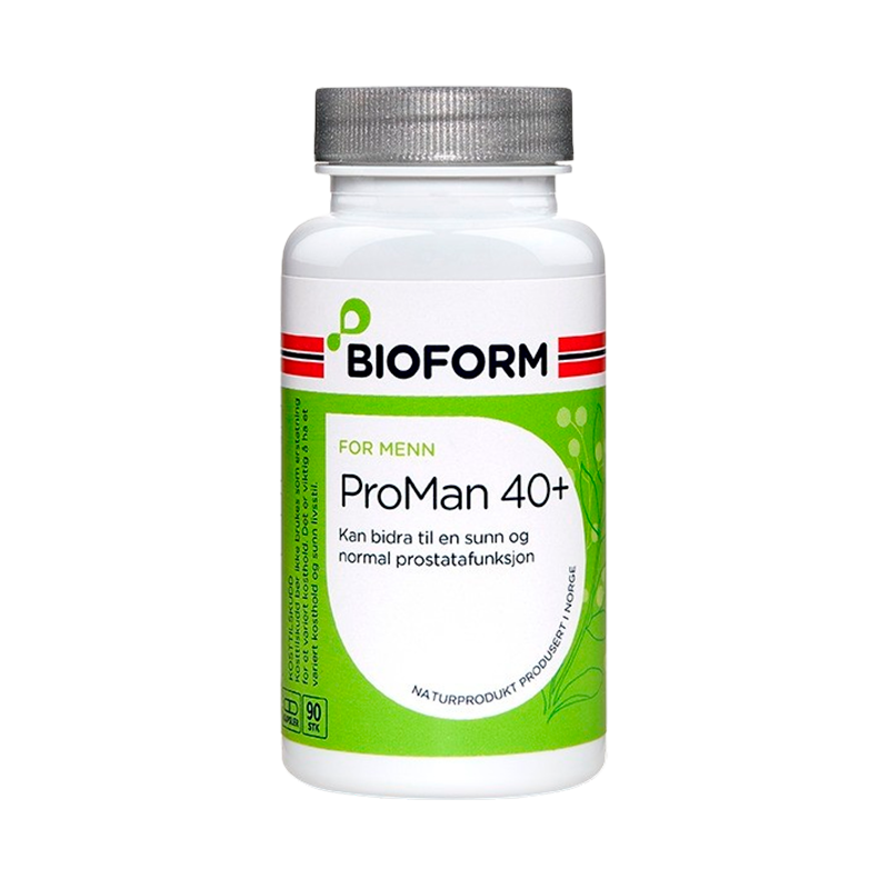 Bioform ProMan 40+ (90 kaps) er et kosttilskud til mænd i alderen 40 og ældre, der er fremstillet med en kombination af græskarkernefrø (Cucurbita maxima) og dværgpalme (Sabal serrulata). Dette kosttilskud kommer i form af vegetabilske kapsler.