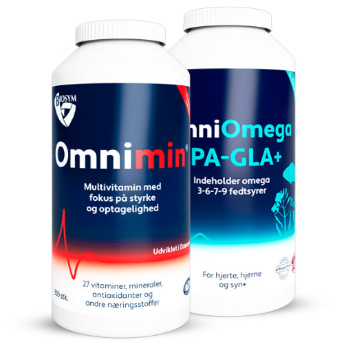 Køb denne pakke bestående af 1 x Biosym Omnimin (300 tabletter) og 1 x Biosym EPA-GLA+ (220 kapsler) og spar 39%