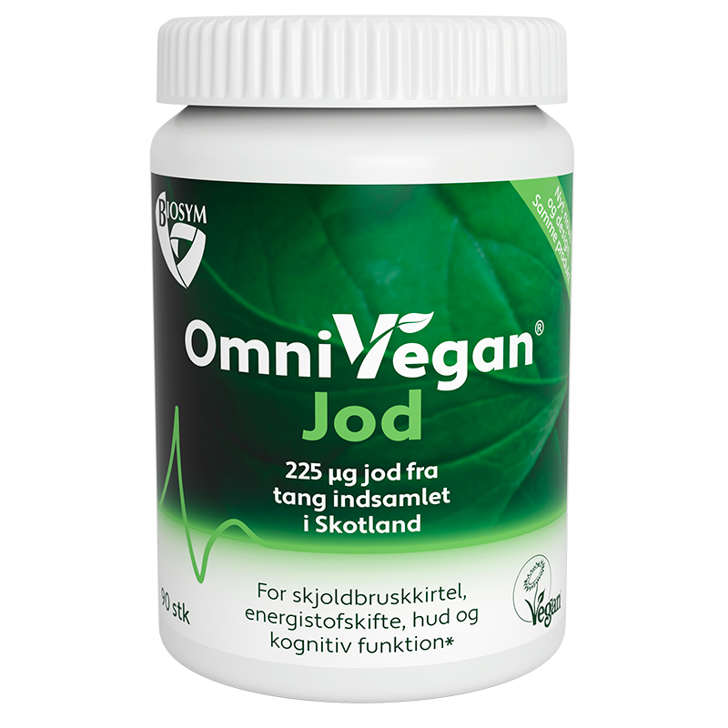 VegJod fra Biosym indeholder PureSea jod fra buletang (Ascophyllum nodosum), nænsomt høstet med omtanke for miljø og bæredygtighed ved Hebriderne i det nordlige Skotland. Jod er et essentielt mineral, der har betydning for kroppens normale sundhedstilstand.