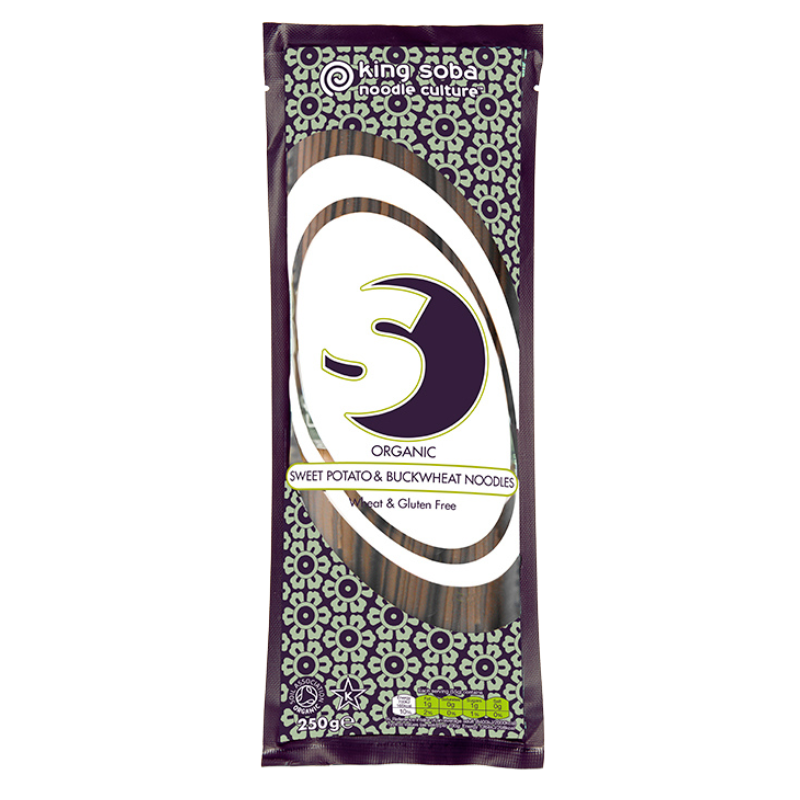 Glutenfrie nudler med boghvede og sødkartoffel. Kog nudlerne og brug dem f.eks. i en suppe, i wokretter eller med pasta sauce. Disse nudler er glutenfrie og indeholder sødkartoffel, som giver dem en fremragende smag. Serveringsforslag: serveres sammen med grøntsager og ingefær. Tilføj lidt tofu eller kød. Gives et smags pift med tamari eller shoyu.