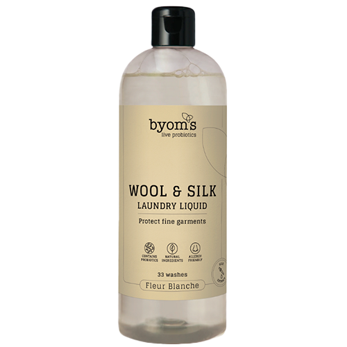 Værd at vide ombyoms Wool & Silk Probiotic Laundry Liquid Fleur Blanche
