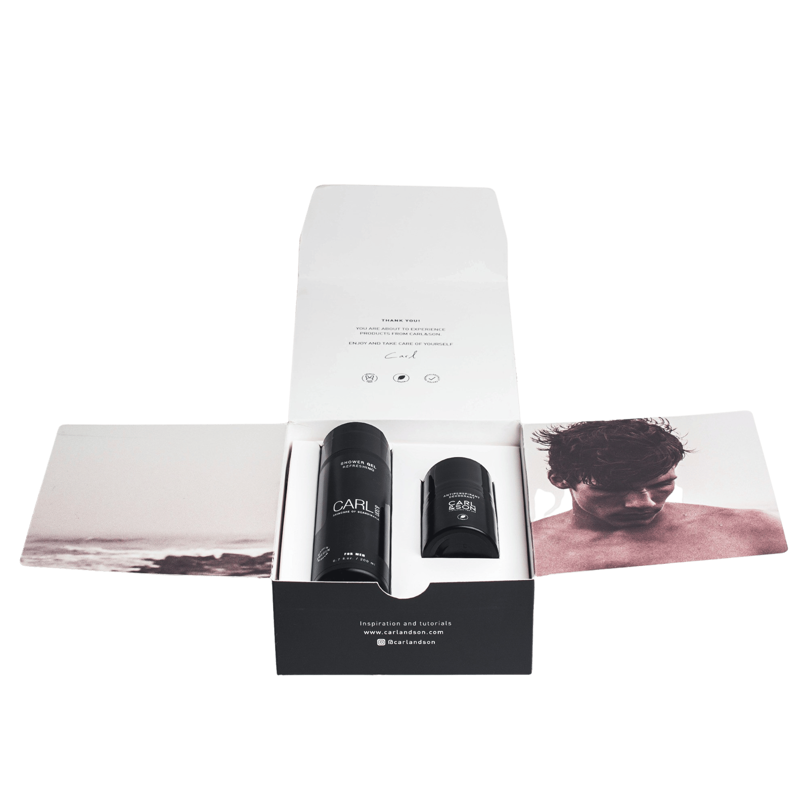 Hold dig frisk hele dagen med dette praktiske sæt fra Carl & Son. Sættet indeholder en forfriskende Shower Gel og en effektiv Antiperspirant Deodorant, der giver dig alt, hvad du behøver for en ren og velplejet start på dagen.