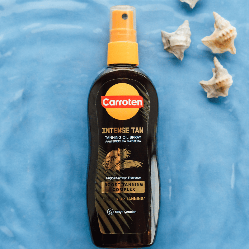 Carroten Intense Tan Oil Spray SPF 0 fremmer hudens naturlige bruningsproces og giver en intens, gylden glød.