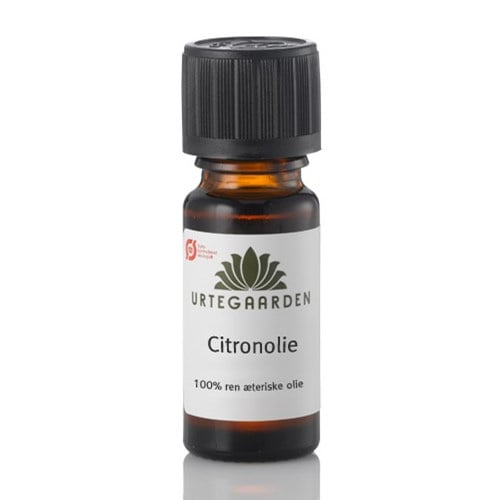 Citronolie Ø æterisk olie Æterisk olie i levnedsmiddelkvalitet. Fremstillet ved koldpresning af skal fra økologisk Citrus limonum. I kosmetik virker den opfriskende, rensende, sammentrækkende og stimulerer blodcirkulationen. Velegnet til uren og fedtet hud. Dosering: Max 1%. Må aldrig anvendes ufortyndet. OBS: Fotosensibiliserende. Duft topnote. Indhold: 10 ml Dosering: Følg anvisninger i opskriften. Må aldrig indtages ufortyndet. Leverandør: Urtegaarden ApS