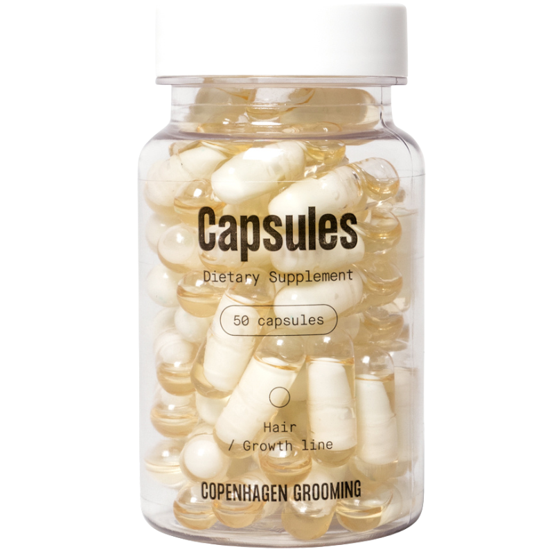Copenhagen Grooming Hair Capsules er et kosttilskud til dig, der ønsker at pleje dit hår indefra. Formlen indeholder biotin og zink, som bidrager til at vedligeholde et normalt hår, og er beriget med græskarkerneolie. Velegnet til alle hårtyper.