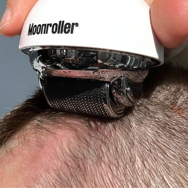 Giv din hårvækst et boost med The Moonroller, en specialiseret dermaroller designet til at modvirke hårtab. Den forbedrer blodcirkulationen og næringsoptaget i hovedbunden, hvilket skaber optimale betingelser for et sundere og stærkere hår.