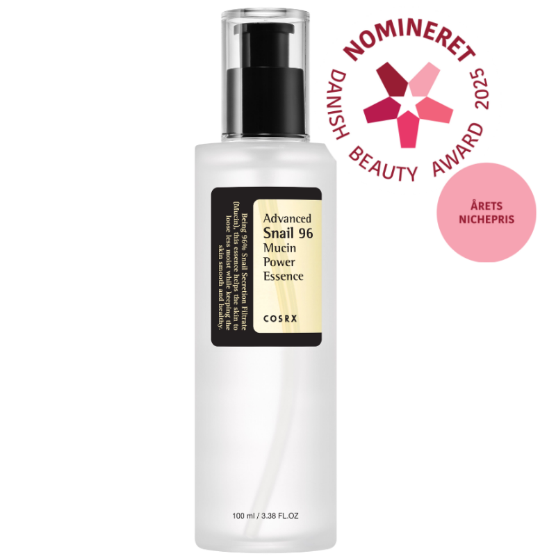 Cosrx Advanced Snail 96 Mucin Power Essence er en ansigtsessens med 96,3 % sneglesekretfiltrat, natriumhyaluronat, allantoin, panthenol og betain, der tilfører fugt og glød.