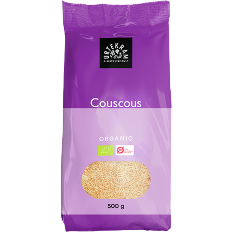 Couscous Ø fremstilles i Frankrig af findelt og dampet økologisk durumhvede.Tilberedning: 2 dl couscous, 1 spsk. olivenolie, havsalt og lidt mynte. Overhældes med 2 dl kogende eller koldt vand i en tykbundet gryde. Lad simre 5 min. og lad trække i 5-10 min.