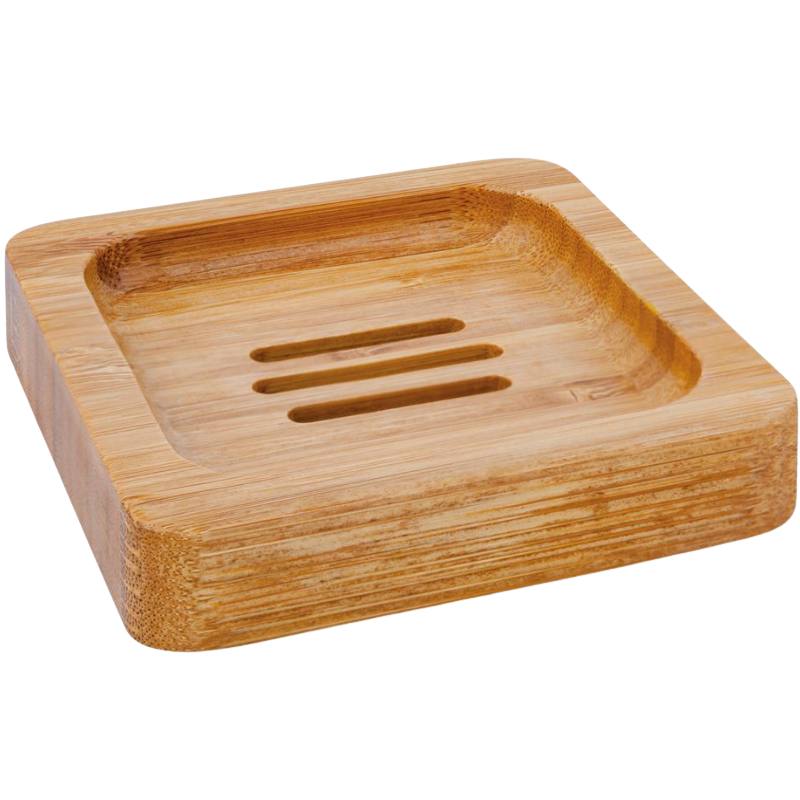 Firkantet bambus sæbeskål er pladsbesparende og praktisk til opbevaring af sæbe og små badeprodukter. Lavet af naturligt bambus.