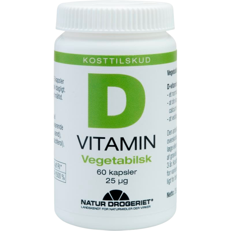Vegetabilske D-vitamin kapsler med D3 vitamin fra alger. D-vitamin bidrager til: Et normalt calciumindhold i blodet. At din krop optager og udnytter calcium og fosfor. At vedligeholde normale knogler. At vedligeholde en normal muskelfunktion. At vedligeholde normale tænder. Immunsystemets normale funktion. D-vitamin spiller desuden en rolle i celledelingsprocessen
