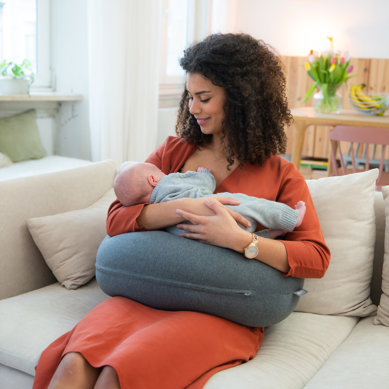 Komfortabel amme- og graviditetspude fra Doomoo i meleret antracit