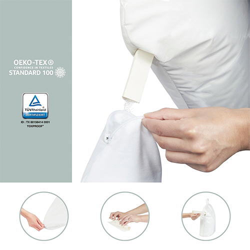 Det anbefales at være to personer ved påfyldning så den ene kan holde den indre pude og den anden ved genopfyldningsposen. Læs beskrivelse på pakken inden anvendelse.Ingredienser