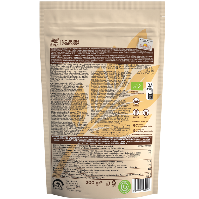 Giv din krop et økologisk proteintilskud med Dragon Foods Protein Mix. Denne blanding er en nem måde at tilføje ekstra protein til din kost, perfekt til smoothies eller efter træning for at støtte dine ernæringsmål.