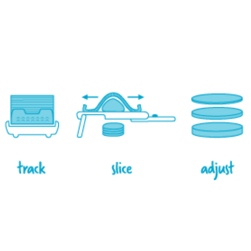Nocutu er et mandolinjern med en unik og fleksibel fingerbeskyttelse, der kører på skinner for at skære sikkert helt ned til den sidste skive. Det knivskarpe japanske blad i rustfrit stål skærer i tykkelser på 1 mm, 2 mm og 3 mm og kan låses for sikker opbevaring i skuffen. Den integrerede, skridsikre fod kan foldes ud for at hæve Nocutu sikkert, så der kan stables flere madskiver nedenunder uden at de kommer i klemme. Den fleksible fingerbeskyttelse kan klikkes på og fungerer også som knivdæksel til sikker og nem opbevaring. Tåler opvaskemaskine. Materiale er: ABS, polypropylen, rustfrit stål.Ingredienser