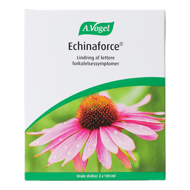 Echinaforce egenskaber: Echinaforce kan med dens indhold af Echinecea Purpurea være med til at lindre symptomer fra forkølelse, tør hoste, eller ophosten af slim og snot.