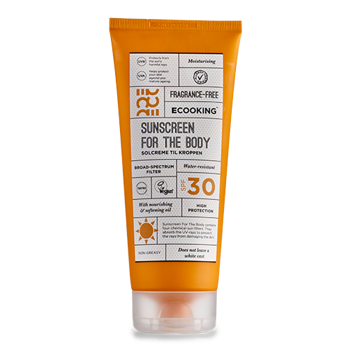 En unik solcreme fra Ecooking, der beskytter din hud mod solens stråler samtidig med at den tilfører din hud et fugtboost.