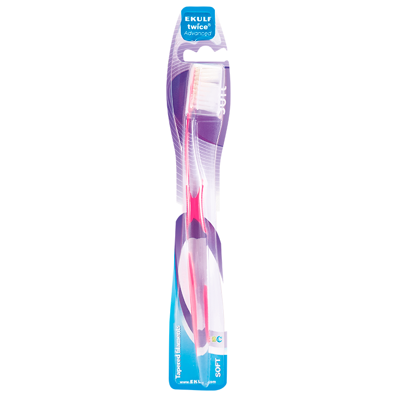 Opnå en effektiv og grundig tandbørstning med Ekulf Twice Advanced voksentandbørste. Den er udviklet til at rengøre dine tænder skånsomt og bidrager til en sund mundhygiejne, så din mund føles ren og frisk hver dag.