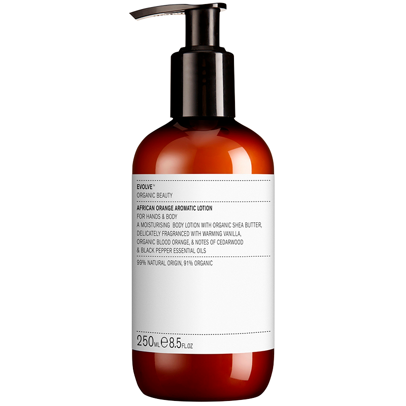 Leder du efter en lotion der både er velduftende, nærende og plejer din hud? Så er African Orange Aromatic Lotion fra Evolve Organic Beauty lige noget for dig!
