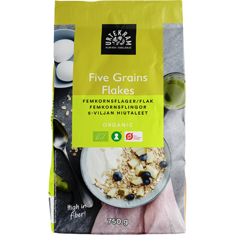 Varedeklaration: Havreflager*, hvedeflager*, bygflager*, rugflager*, riflager* - intet andet * = økologisk.