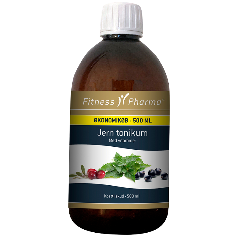 Fitness Pharma Jern Tonikum M. Vitaminer (500 ml) er et flydende jernkosttilskud i form af saft fra blandt andet æble, rød drue, solbær og tyttebær. Dette kosttilskud er kombineret med vitaminer som thiamin, riboflavin, vitamin B6, B12, C og folsyre. Den daglige dosis for en voksen er 1 spiseskefuld eller 15 ml.
