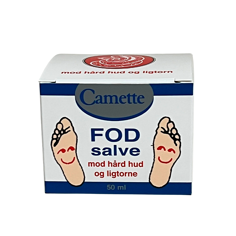Camette fodsalve (50ml) er en plejende fodsalve med petrolatum, salicylsyre, mælkesyre og vand, udviklet til brug på hård hud og ligtorne.