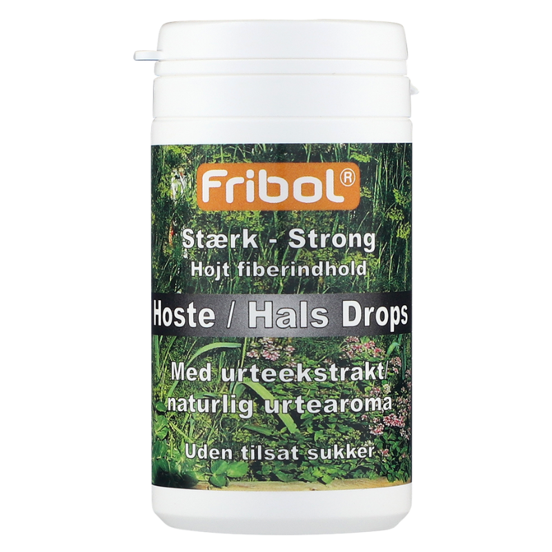 Fribol Hoste/Hals Drops er stærke halspastiller baseret på en lang række naturlige urteekstrakter og æteriske olier, der giver en forfriskende fornemmelse, når du har mest brug for det.