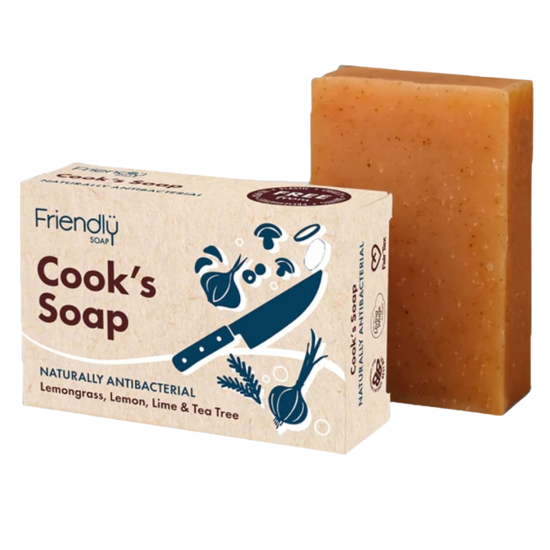 Friendly Kokke Sæbe er en 100% naturlig håndsæbe, skabt til at fjerne genstridige lugte fra madlavning. Den neutraliserer effektivt dufte som hvidløg, løg og fisk, og efterlader dine hænder rene og friske til næste opgave.
