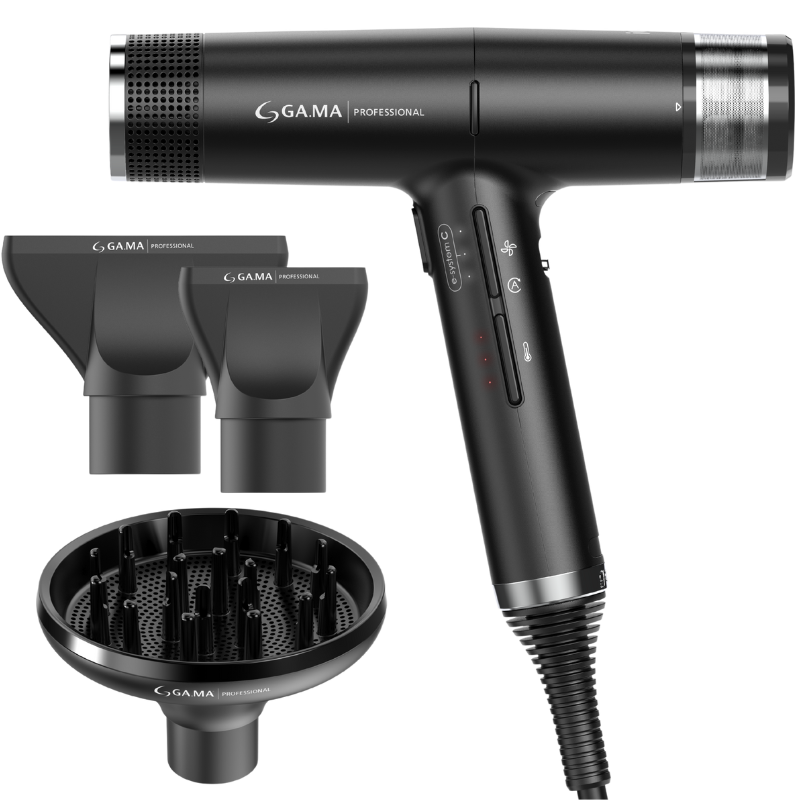 Oplev professionel hårpleje med GA.MA IQ1. Denne ultralette hårtørrer med en kraftfuld motor og Oxy Active-teknologi sikrer en skånsom og effektiv tørring. Perfekt til både salonbrug og luksuriøs styling derhjemme.