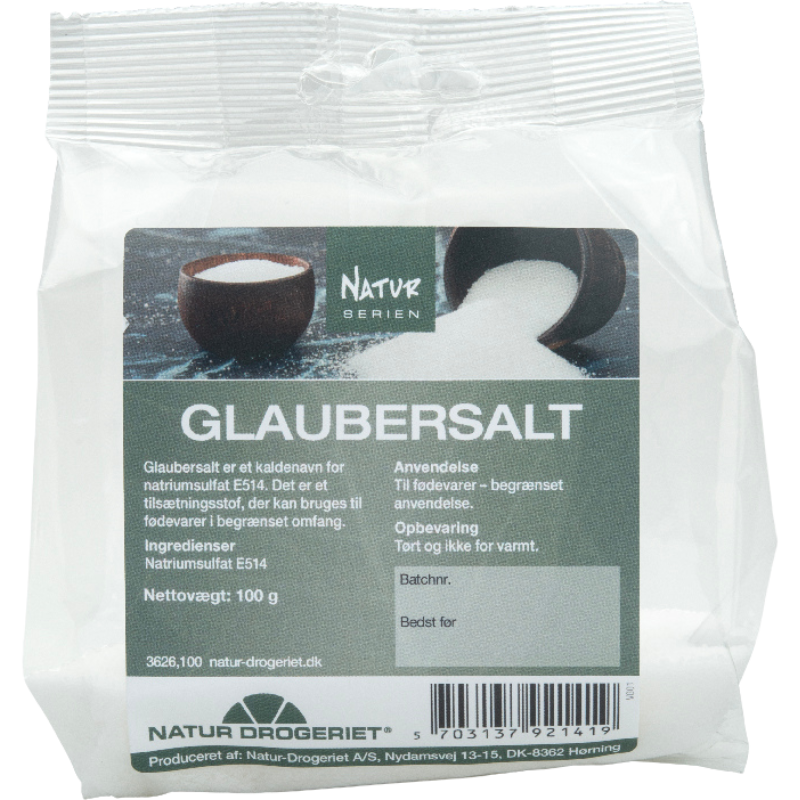 Glaubersalt kaldes også svovlsurt natron og kan bruges til levnedsmidler i begrænset omfang.