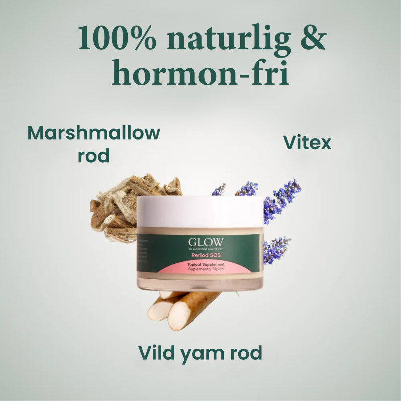 En blød og plejende creme, udviklet i samarbejde med Hormone University. Den er nem at påføre, absorberes hurtigt og kan indgå som en naturlig del af din daglige selvplejerutine. Period SOS Cream er formuleret med botaniske ingredienser som Vitex og Wild Yam, der i mange år er blevet anvendt i forskellige sammenhænge. Kombinationen er sammensat med fokus på velvære og egenomsorg gennem hele cyklussen. Cremen er designet som et naturligt supplement til hudpleje, hvor der er fokus på balance, komfort og velbefindende.