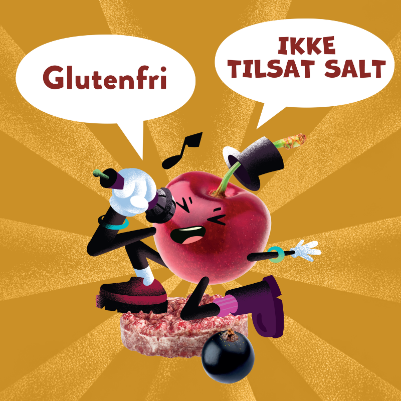 Ris 85%, Æblejuice koncentrat 11%, Kirsebær juice koncentrat 3,0%, Solbær juice koncentrat 1,0%, Thiamin (vitamin B1)