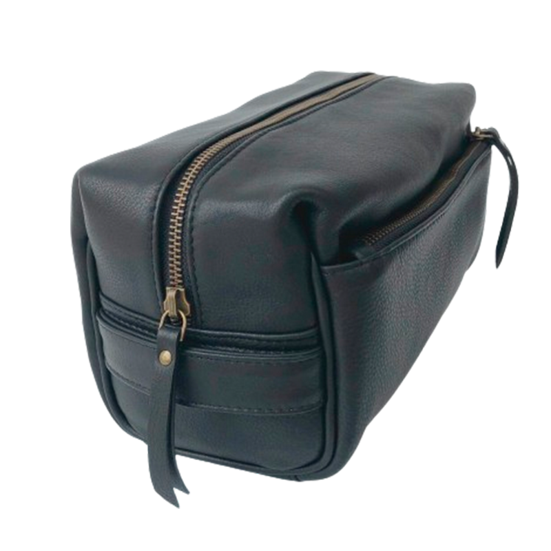 Hold styr på dine toiletsager med denne rummelige toilettaske i ægte læder. Den har en praktisk, vandtæt inderside af polyester-twill, som beskytter dine produkter, uanset om du er hjemme eller på farten. Perfekt til at organisere dine ejendele.