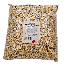 Havregryn grove. Posen indeholder 750 økologiske grove havregryn.