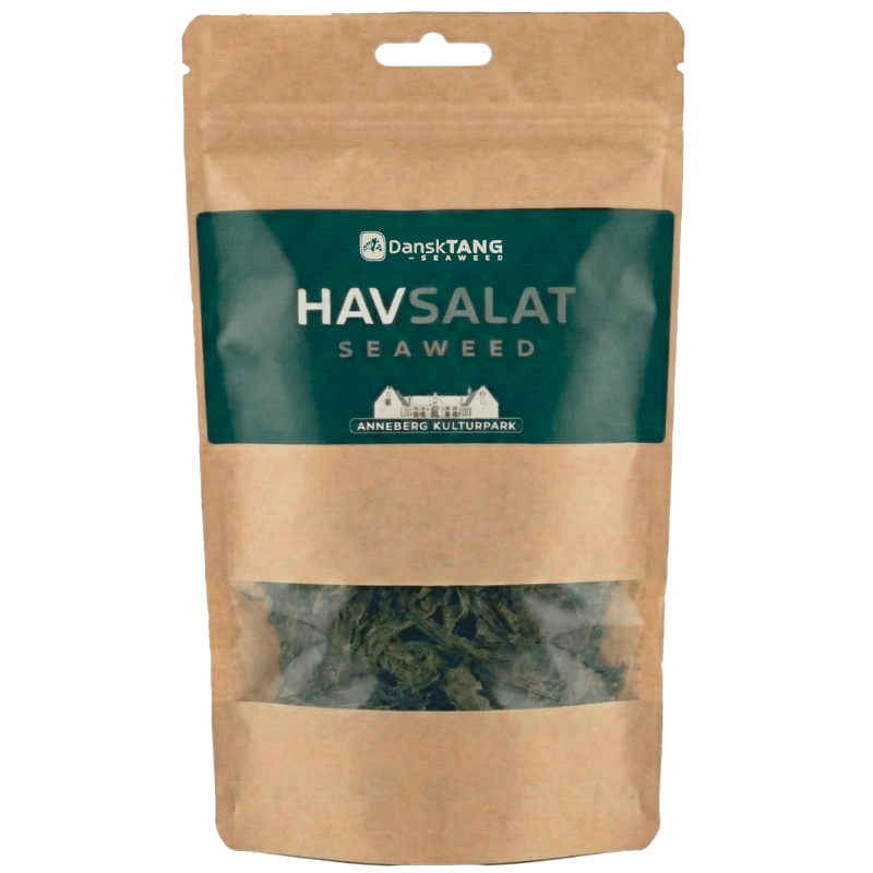 Dansk Tang Havsalat i Poser Tørret Sea Lettuce er en skøn tang salat af højeste kvalitet, som er groet og høstet i Danmark. Sea Lettuce er kendt som havets salat, der består af grønne mikroalger.