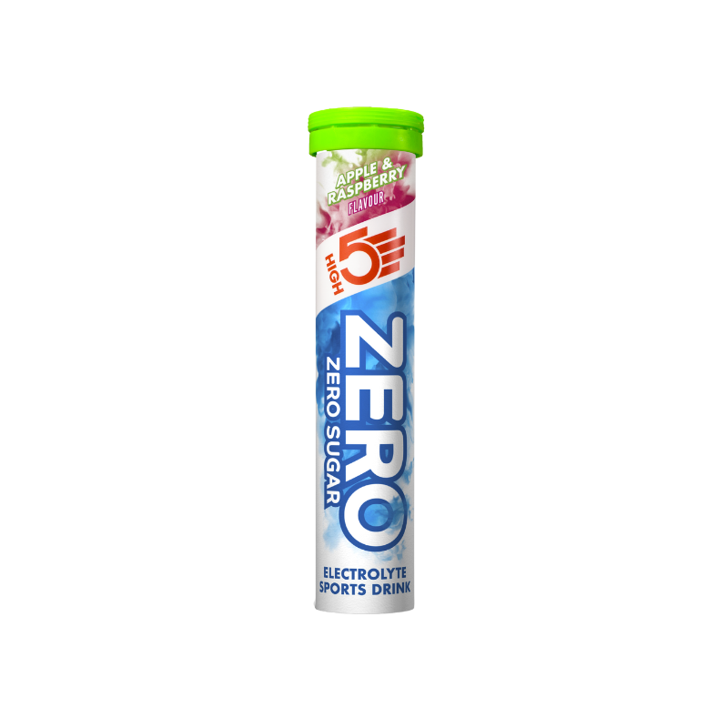 High5 ZERO er en velsmagende, sukkerfri elektrolyt brusetablet, som tilfører dit vand en sammensætning af salte og mineraler. High5 ZERO Apple & Raspberry har en naturlig og forfriskende smag af æble og hindbær.